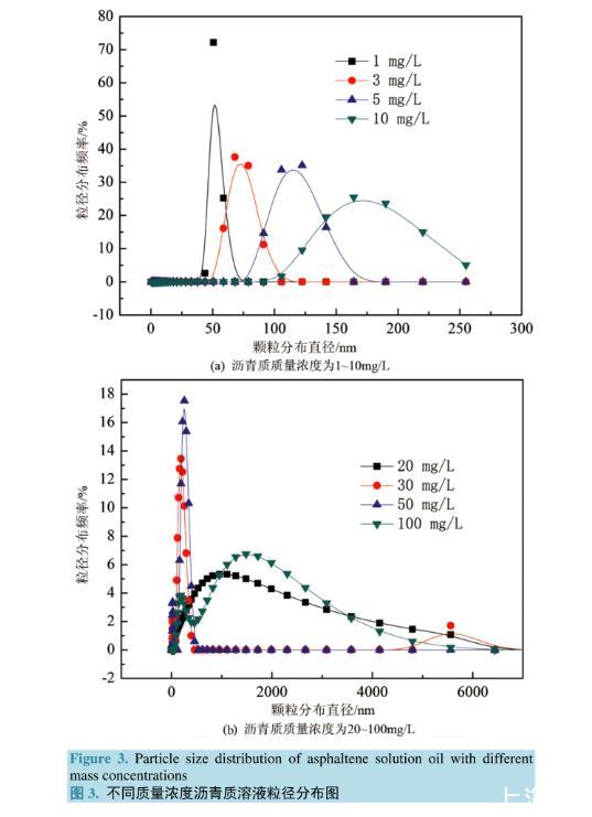 3.3.不同質量濃度瀝青質模擬油體系粒徑分布