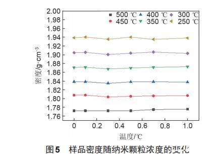 在不同溫度工況點下,5種納米熔鹽的密度和基鹽的密度均處在同一水平線上。
