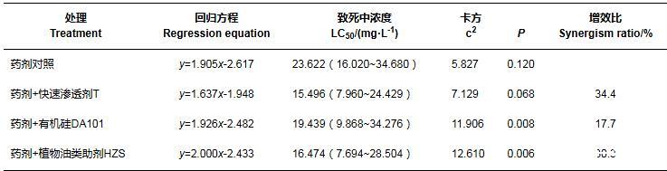 2.3噴霧助劑對2種藥劑防治石斛菲盾蚧室內毒力的增效作用