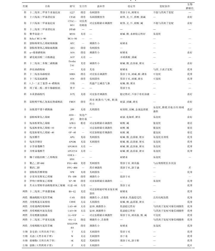 表1常見表面活性劑及其性質