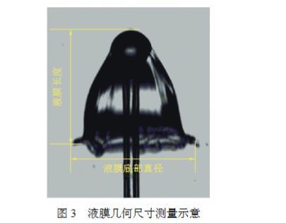 為進一步驗證本模型計算結果的可靠性,依據BANITABAEI等在實驗中設置的不同碰撞條件,開展了相應的數值模擬。如圖5b和圖5c所示,在不同碰撞條件下,數值模擬結果中的液滴形變過程與實驗結果均具有較高的吻合度。圖6對比了數值模擬結果與實驗結果中液滴幾何尺寸的變化過程,也具有較高的吻合度。其中,圖6a所展示的液膜底部直徑隨時間變化曲線,數值模擬結果與實驗結果稍有偏差,原因是實驗中固定顆粒的支撐柱對液膜底部的形變過程產生了一定影響。綜上所述,可認為筆者構建的數值模擬模型合理,結果具有較高可靠性。由于在毫米尺度下和微米尺度下,液滴與固體顆粒的碰撞過程均遵守經典牛頓力學定律和經典流體力學理論,所以本數值模擬模型可用于微米尺度下的其他工況條件的數值模擬研究。