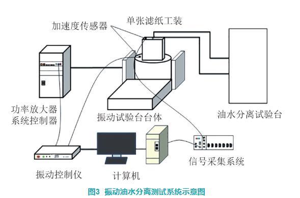 試驗的主要設備有電振動試驗臺、按照ISO 16332標準搭建的柴油–水分離試驗臺、加速度傳感器及信號采集系統、電子天平、庫倫法微量水測定儀、界面張力儀、黏度計等。