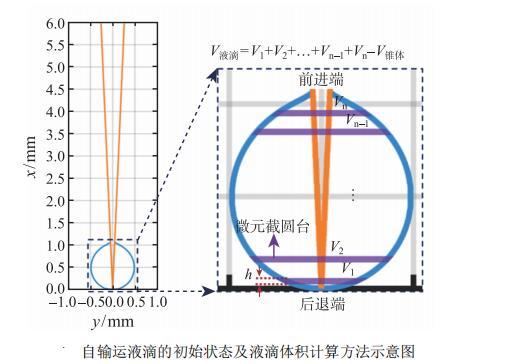 研究結果顯示,液滴的自輸運驅動力Fd可表示為界面自由能E對輸運高度h的負導數(shù):Fd=-dE/dh。隨著液滴沿錐體向上移動,其界面自由能和驅動力均單調遞減,最終當驅動力等于重力時,液滴停止運動。