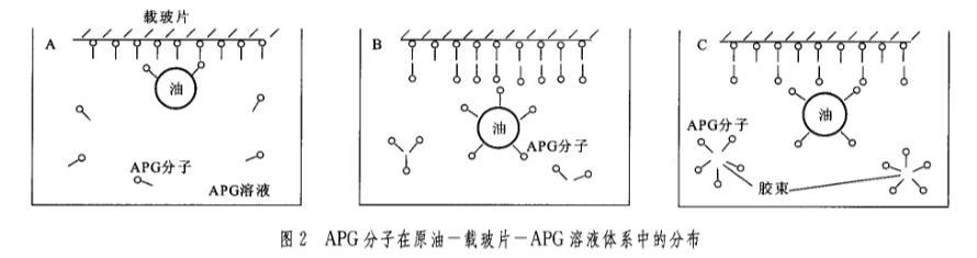 圖2 APG分子在原油一載玻片一APG溶液體系中的分布