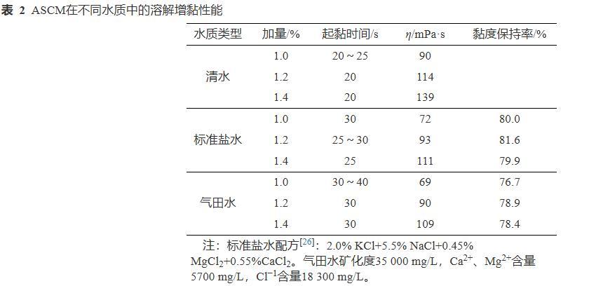表2 ASCM在不同水質(zhì)中的溶解增黏性能