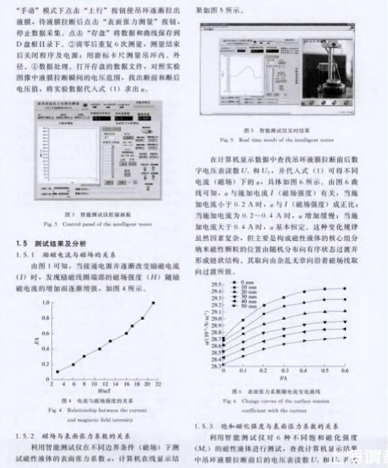 摘要:利用同種磁性液體表面張力智能測試儀在不同邊界條件下對磁性液體的表面張力系數(shù)進(jìn)行了測試,實(shí)驗(yàn)結(jié)果表明,磁性液體表面張力系數(shù)與磁場強(qiáng)度及其飽和磁化強(qiáng)度成正比。利用不同儀器、在相同邊界條件下對同種磁性液體表面張力系數(shù)測試的結(jié)果表明,智能儀器能夠準(zhǔn)確獲取磁性液體液膜斷前、斷后的電壓值,減小依靠人眼盲讀電壓值產(chǎn)生的誤差,測試精度比傳統(tǒng)儀器提高了4.14。