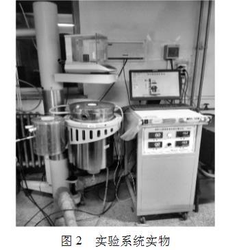 表面張力的測量需在恒溫狀態下進行。初期實驗發現該儀器的可控硅溫控系統對高溫下實驗測量結果影響較大,測量數據分散性較大,分析認為是溫控系統的周期性加熱在熔體內產生的不穩定對流影響的結果。為解決這一問題,用可調壓輸出的直流電源替換了原有的溫控器和可控硅調壓器,通過手動調節并恒定直流電源的輸出電壓控制電加熱爐的加熱功率,使電加熱爐在不同的加熱功率下達到不同的熱平衡溫度。在每一個熱平衡工況點,電加熱爐輸入直流電壓保持恒定,避免坩堝中熔體內部熱對流對實驗測量結果的較大影響。改進后的實驗系統如圖1所示,鉬筒底環平均半徑0.0065 m;剛玉坩堝高0.1 m,外徑0.05 m;坩堝內熔鹽液面高度0.04~0.05 m;直流電源型號為安捷倫N5771A;熱電偶型號為K型;數據采集模塊采用研華ADAM4000系列;電子天平型號為JD200-3,精度0.001 g;電加熱爐內徑0.06 m,外徑0.2 m,高0.3 m;變頻器型號為三菱D700。實驗系統實物如圖2所示。