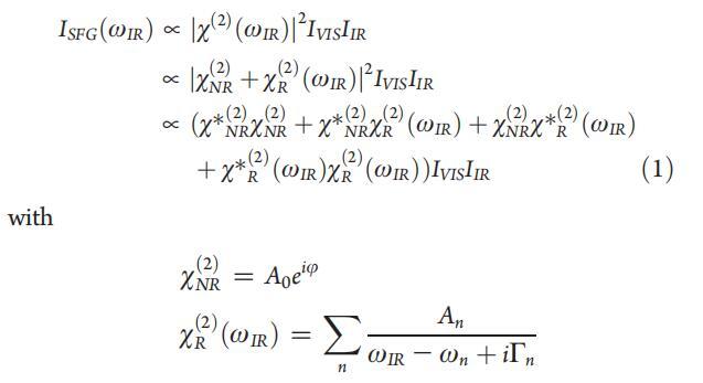 磁化率包含一個非共振項,振幅為A0,相位相對于共振項j,以及一個共振項。后者通過共振頻率ωn、線寬2Γn和振幅An來描述n個振動共振。