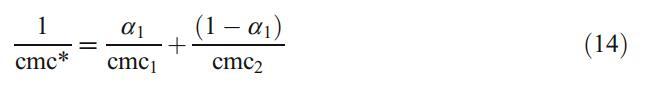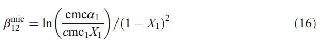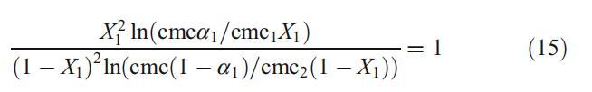 這些結(jié)果已通過使用規(guī)則溶液理論得到進一步證實,該理論不僅表征了混合膠束中的相互作用參數(shù)bmic 12,而且還解釋了與理想的偏差[32]。X1是膠束中DPS的摩爾分數(shù),可根據(jù)以下方程式迭代計算: