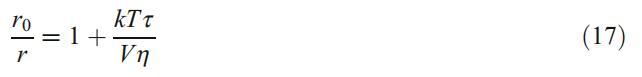 其中r0是在沒有旋轉(zhuǎn)自由度的情況下獲得的發(fā)射各向異性的極限值,k是波爾茲曼常數(shù),T是溫度,τ是熒光團激發(fā)態(tài)的平均壽命,V是探針的有效分子體積,h是探針周圍的粘度。從等式17可以看出,r值越高,剛性越高,反之亦然。