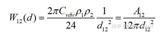 按照分子理論,兩個(gè)分子間存在Van der Waals力,對應(yīng)存在兩分子間的van der Waals相互作用勢,其表達(dá)式為