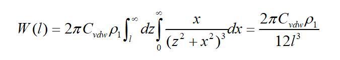 若取l為物質(zhì)本體內(nèi)分子間的距離d11,且兩半無限體為同一種物質(zhì)時(shí),則上式的互作用勢變?yōu)椋ㄈ〗^對值