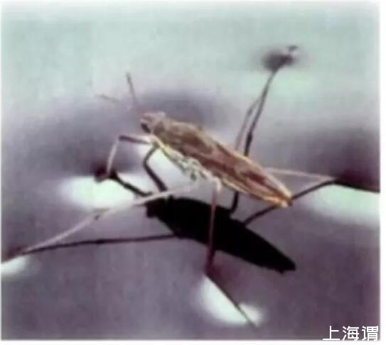 接下來我們看一下,水黽或者繡花針為什么能站在水面上?很顯然不是浮力的作用,如果有福利的話,必須要有排開水的體積。