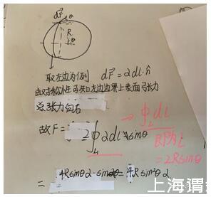 (在這里因?yàn)橐粋€(gè)肥皂泡膜與兩個(gè)介值相接觸,所以膜的兩側(cè)各形成一個(gè)表面張力,由于肥皂泡厚度很小,所以這兩個(gè)表面張力近似相等)