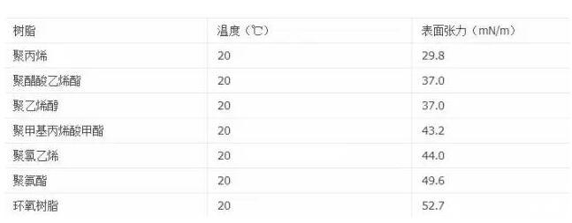 表1一些固體樹(shù)脂的表面張力