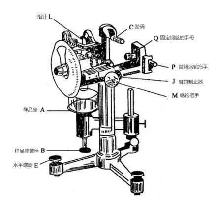 表面張力儀的結構,主要由扭力絲、鉑金環、支架、杠桿架、蝸輪付等組成。使用時通過蝸輪付的旋轉對扭力絲施加扭力,并使該扭力與液體表面接觸的鉑金環對液體的表面張力相平衡,當扭力繼續增加,液面被拉破時,扭力絲扭轉的角度,用刻度盤上的游標指示出來,此值就是M值,用mN/m表示。最后用M值乘以校正因子F,即得液體實際表面張力值δ。