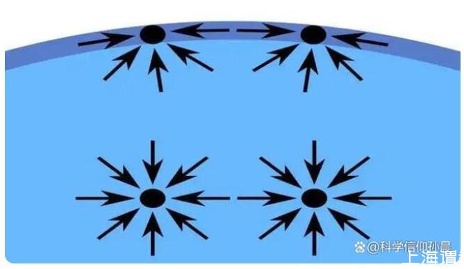 水滴要變成一個完美的球體,而要想變成一個完美的球體就必須依靠一個作用在表面上的力,這個力就是“表面張力”。