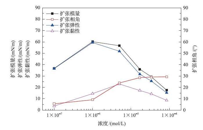 界面擴(kuò)張流變參數(shù)與濃度的關(guān)系(懸掛滴方法)