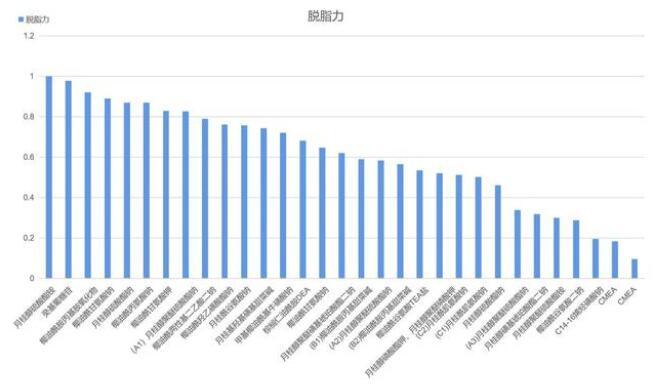從上述數據中可以看出,在規定條件下,脫脂力最強的是月桂醇硫酸酯銨,脫脂力最弱的是兩款CMEA;