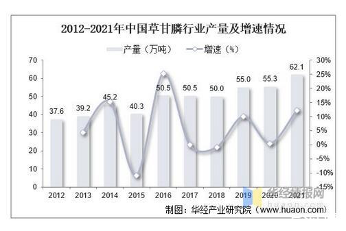 烷基糖苷在農化領域主要應用于草甘膦助劑,俄烏沖突帶動糧價走高,海內外草甘膦需求明顯增長。據統計,2021年國內產量約為62.05萬噸,同比增長10.5%。