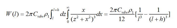 始終ρ1為無限大平板物體單位體積的分子數(分子密度);h為平板的厚度;l為單個分子到平板的最近距離。