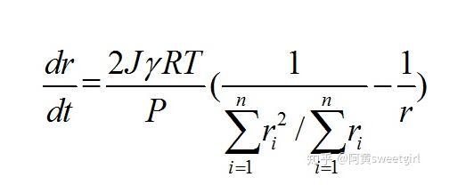 假設(shè)氣體符合氣體理想氣體方程,即PV=nRT,對(duì)于球形氣泡,體積V=4πr^3/3,從而可把摩爾速率轉(zhuǎn)化為氣泡半徑變化的速率。通過以上各式,可得