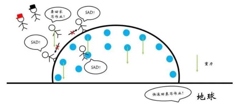 這樣的理解雖然直觀,但是缺少了幾分更加深入的視角,也沒辦法真正理解什么是表面張力。那怎么辦呢?我們來看看與力對(duì)應(yīng)的能量(特指勢(shì)能)。以重力為例,大家可能聽說過重力勢(shì)能,即某一地球附近的物體由于處于一定的高度而蘊(yùn)含的能量。更加直觀地講,如果以地面為勢(shì)能零點(diǎn),則物體在重力的作用下下落到地面所能釋放的能量就是重力勢(shì)能。