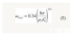 當(dāng)含表面活性劑射流離開噴嘴后,其表面會(huì)形成不穩(wěn)定波。射流表面不穩(wěn)定波隨著射流的前進(jìn)不斷發(fā)展并最終導(dǎo)致了液體射流的破裂。從圖5中可以看出,實(shí)驗(yàn)工況下,射流表面波動(dòng)為正對(duì)稱波;從圖6中可以看出,射流破裂長度隨著液體射流速度的增大而增大。因此,可以認(rèn)為在實(shí)驗(yàn)工況下,含表面活性劑射流處于Rayleigh模式。在此射流破裂模式下,射流表面最不穩(wěn)定波的增長率可以表示為[18]: