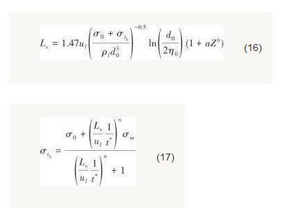 式中,η和η0分別為射流表面波動(dòng)振幅和初始振幅,m。假設(shè)表面波振幅發(fā)展至射流半徑時(shí),射流發(fā)生破裂。因此,射流破裂長度可以表示為[9]: