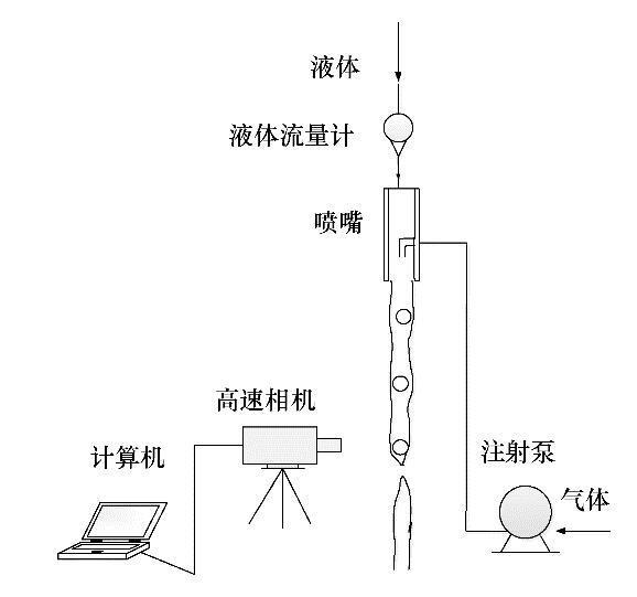 實(shí)驗(yàn)流程如圖1所示。來自注射泵的氣體通過充氣通道進(jìn)入噴嘴并在噴嘴內(nèi)形成氣泡,并與來自液體流量計(jì)的液體相混合形成氣液混合物。該氣液混合物離開噴嘴后,在不穩(wěn)定波的作用下發(fā)生破裂,使用高速相機(jī)記錄這一過程,并使用開源軟件ImageJ分析處理得到的圖片。實(shí)驗(yàn)通過控制注入噴嘴的氣體流量從而得到不同液體射流速度下直徑近似相等的氣泡。實(shí)驗(yàn)使用的噴嘴如圖2所示。其中,噴嘴內(nèi)徑d 0=2.96 mm,充氣通道外徑d 1=0.50 mm。