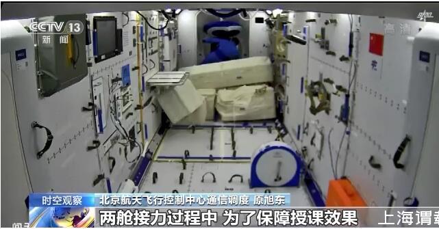 北京航天飛行控制中心通信調度原旭東:我們采用了問天艙和天和艙兩艙切換跟蹤的模式,每個艙都可以下傳同樣的攝像機(圖像),包括話音。通過兩艙的話音級聯、圖像下傳,確保整個(太空授課)圖像話音流暢。兩艙接力過程中,為了保障授課效果,我們也是精心設計,再結合授課腳本進行圖像話音切換。