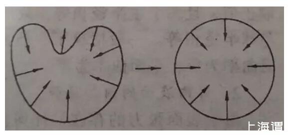 當你吹泡泡的時候,無論用什么泡泡圈,吹出來的泡泡都是近球形的,童鞋們會懊惱為什么:不能吹個泡泡都是愛你的形狀呢?從受力分析而言,當泡泡為不規則形狀時,其相鄰的兩點曲率不一樣,則表面張力方向不一樣,根據受力分析,水會向合力的方向流動,最后平衡狀態為相鄰兩點受力一致,曲率一致。推廣到整體,就是一整個球體形狀的形成。