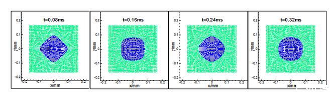 初始方形液滴在表面張力作用下變化過程