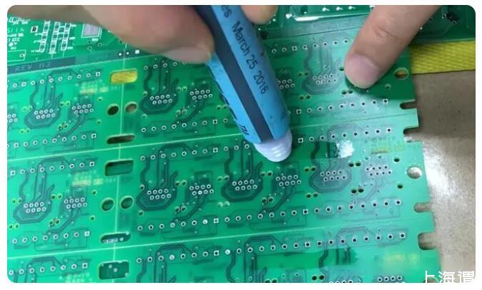 測量PCB表面的張力主要是通過便攜式的測試筆,里面含有特定的張力測試液體,像是通常我們使用的大頭油性筆似的,測試時只要輕輕在需要測試的表面畫一條直線,待2-3秒鐘過后,觀察畫的直線是否附著均勻,沒有收縮成水珠狀,說明達到了該測試筆設定的張力,張力的單位為達因/厘米(dyne/cm),有時又稱測試筆為達因筆。具體測試筆品牌這里就不給做廣告了,這個測試在市面上也很容易買到。測試的方法也比較簡單,為了確定張力的范圍,一般必須準備至少2只測試,一般測試的張力區間在+/-2達因/厘米之間。