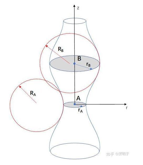 在A點(diǎn),z方向上產(chǎn)生了負(fù)曲率(半徑RA),而r方向上,由于半徑變小,曲率變大。也就是說(shuō),A點(diǎn)上的曲率變化產(chǎn)生了兩個(gè)效果:
